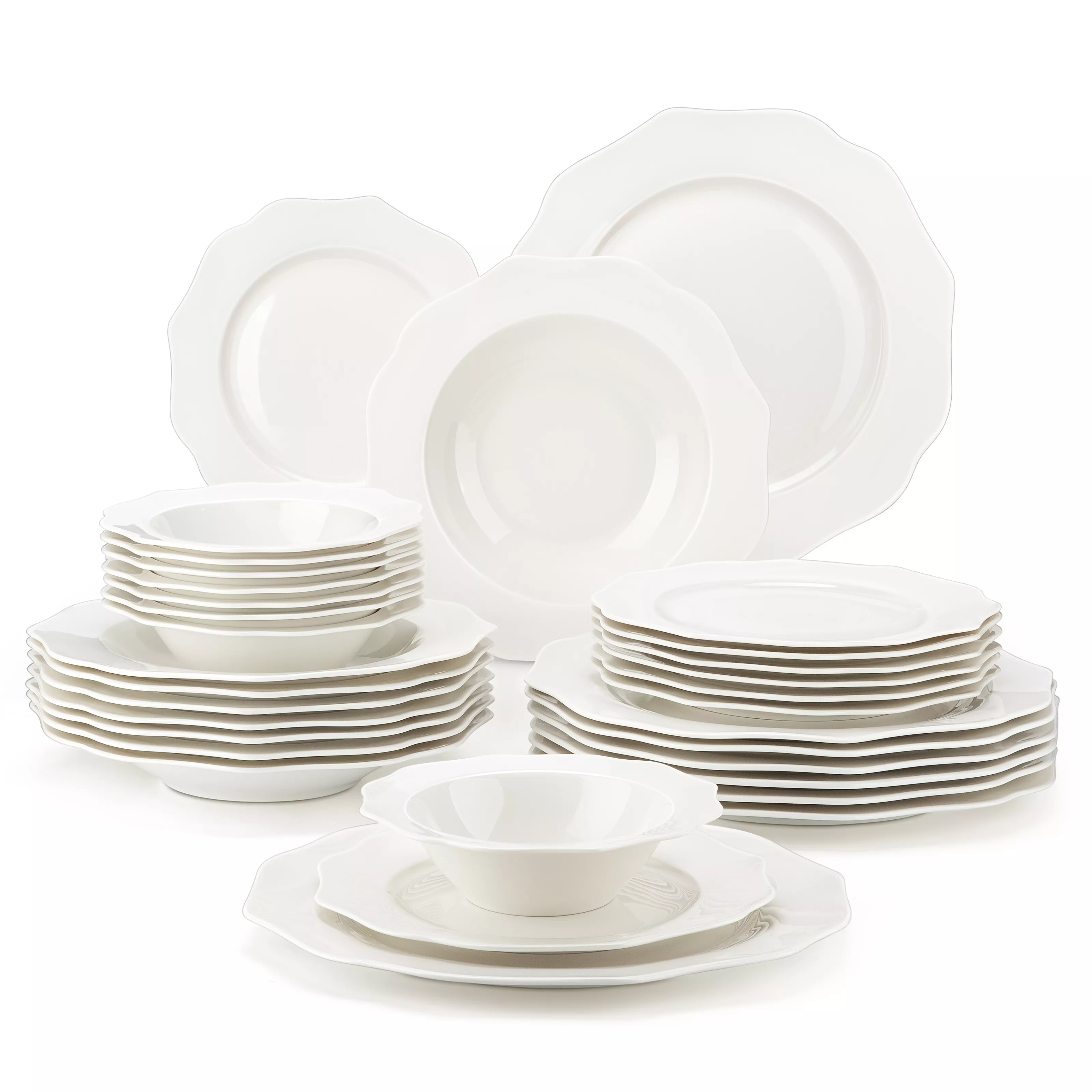 Whether it’s a festive celebration, a family get-together, or a cozy dinner for two, this versatile set fits effortlessly into every occasion. The neutral white hue complements any table décor and pairs seamlessly with other kitchenware, making it a timeless addition to your home.