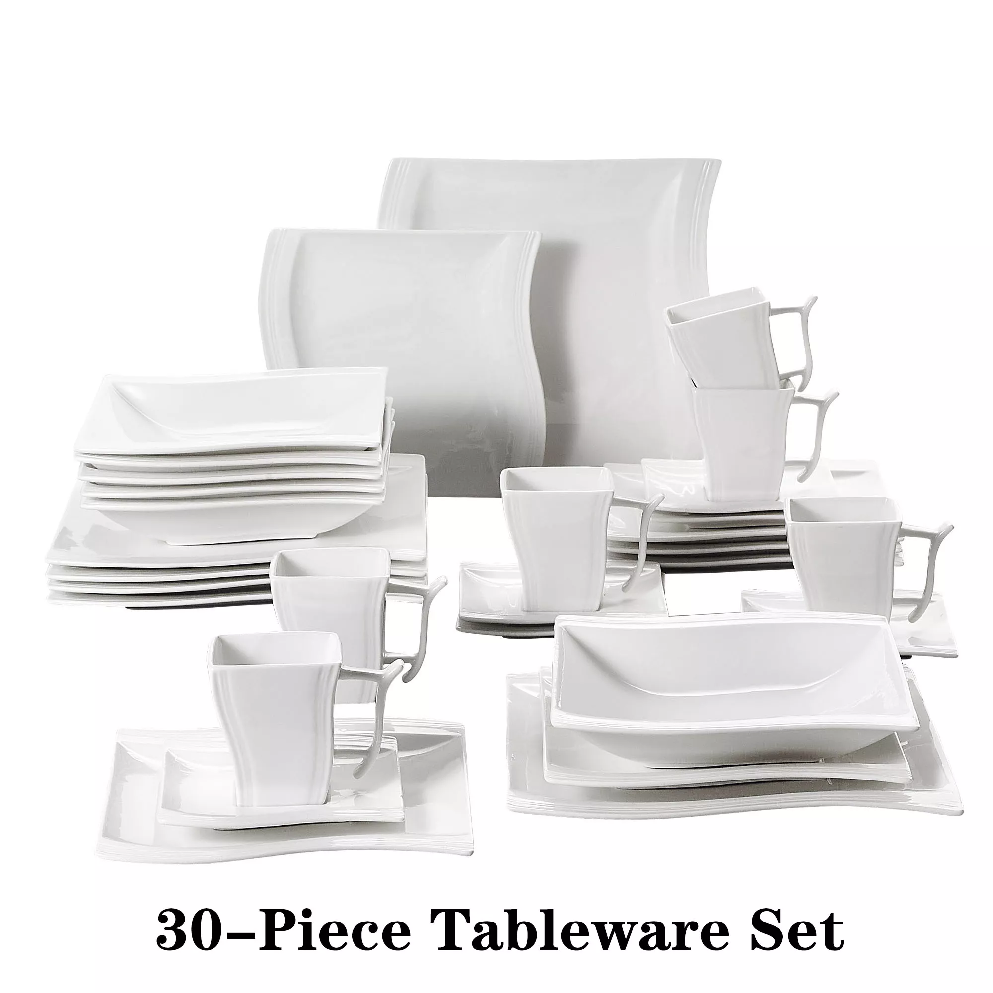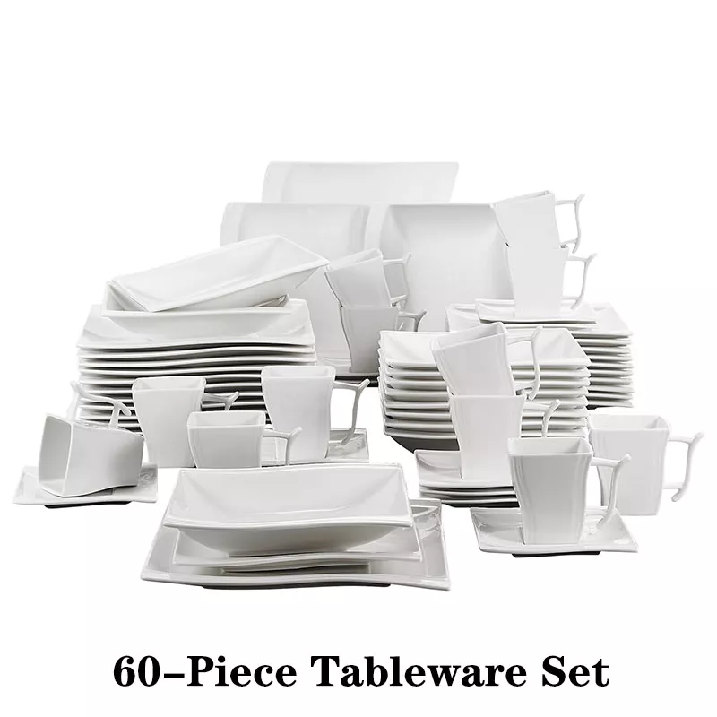 Transform your dining experience with this 60-piece white porcelain dinnerware set, designed for hosting with style. Crafted in a sleek square design and finished in a timeless ivory white, this full tableware collection is the perfect combination of form and function. Whether you’re entertaining guests, setting the table for a family dinner, or simply enjoying a quiet meal at home, this set delivers elegance with every bite.