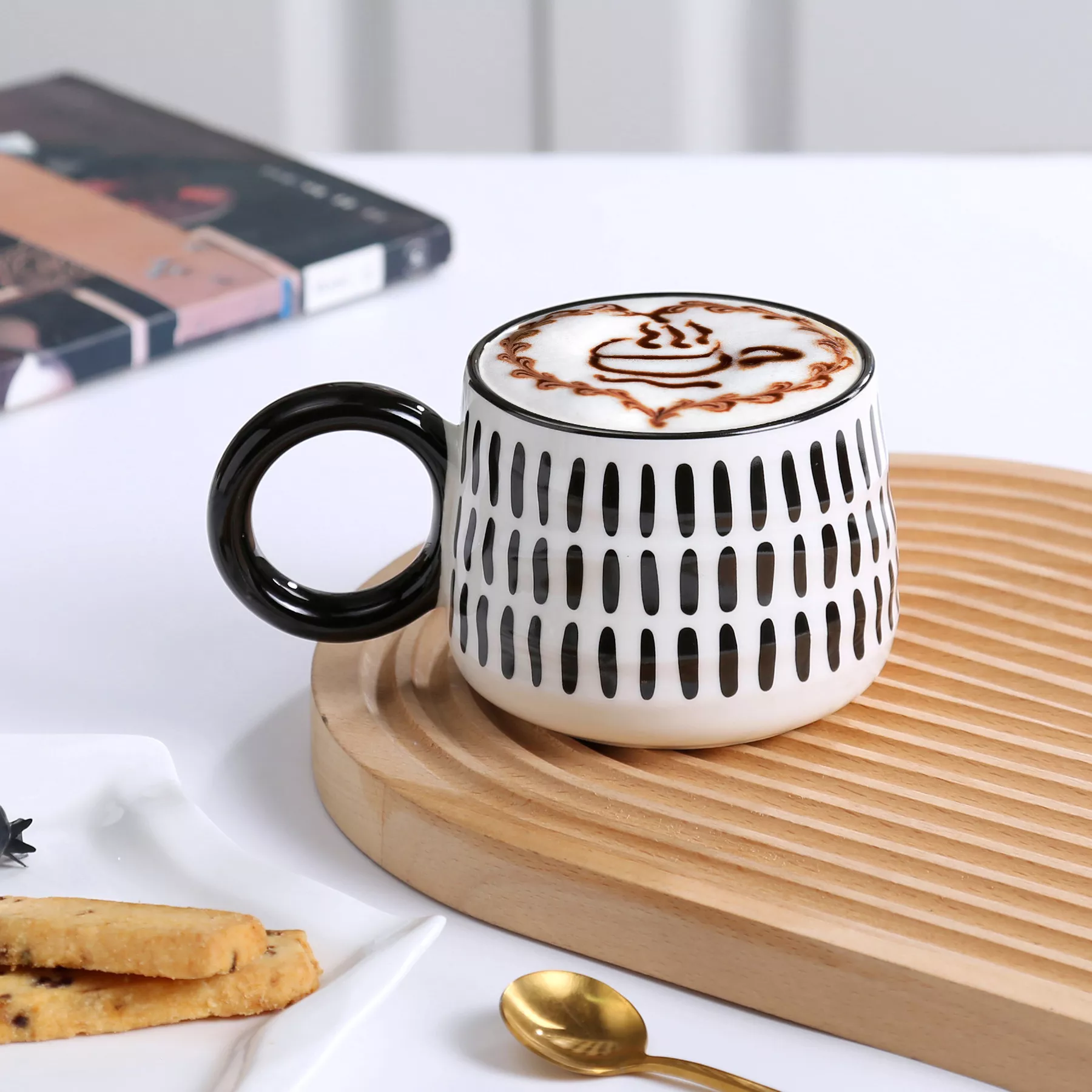 This ceramic coffee cup features a classic black and white chessboard pattern that blends effortlessly into modern or minimalist home décor. Its comfortable handgrip provides a secure and cozy hold, making it perfect for lattes, cappuccinos, hot chocolate, or a simple tea break. The mug holds just the right amount of your favorite beverage, making it ideal for relaxed mornings, casual brunches, or winding down in the evening with your favorite brew.