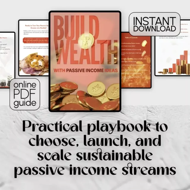 Build Wealth with Passive Income Ideas is a step-by-step digital Guide designed to help you understand passive income, choose the right path, and scale it with confidence. Written in clear, no-fluff language, this downloadable PDF walks you through proven strategies—from dividend investing and real estate to digital products and affiliate marketing—so you can turn a side hustle into sustainable passive income. You’ll get real case studies, prompts that guide your decisions, and a personal roadmap to stay consistent without burning out.