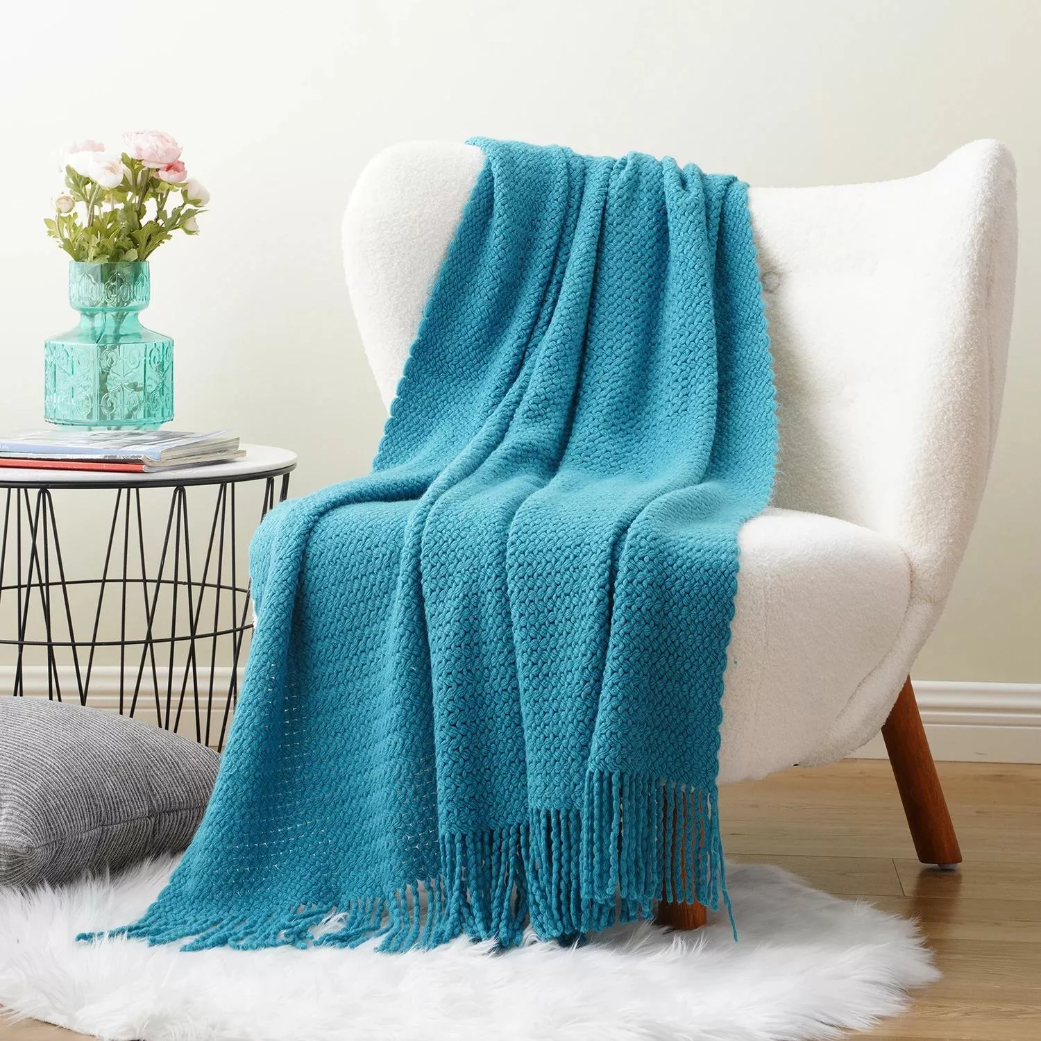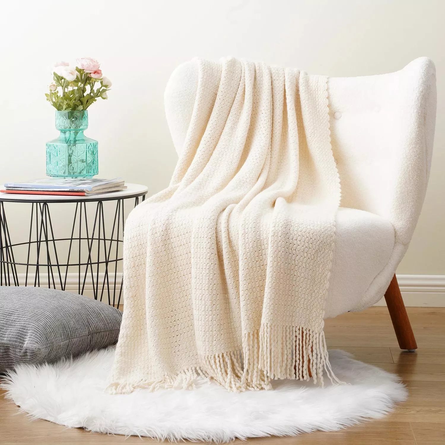 This throw blanket is more than just a cozy accessory – it’s a style statement. Its solid color and detailed knit pattern add a subtle elegance that complements any decor style, from modern minimalist to rustic farmhouse. Lightweight enough to carry and thick enough to keep you warm, it’s designed for year-round comfort. Whether placed on a bed, sofa, or armchair, it instantly elevates the space with a touch of warmth and texture.