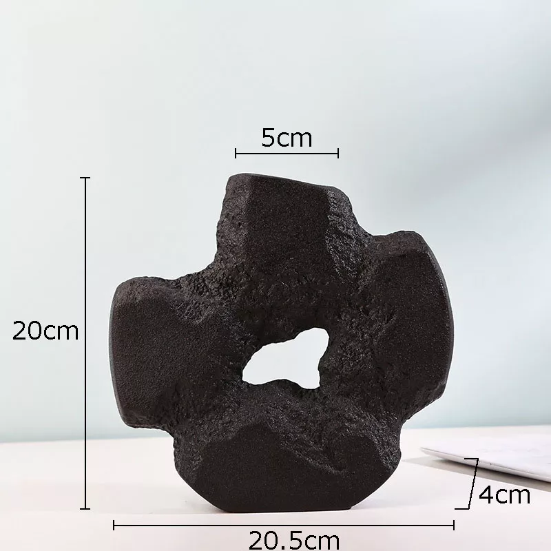 Crafted from durable ceramic, this vase mimics natural stone in both appearance and form. Its hollowed-out body adds dimensionality, letting light and shadow play across its surface for a dramatic effect. Compact yet striking, it measures perfectly for placement on desktops, coffee tables, or shelves. Whether used with dried flowers or as a standalone decorative sculpture, it instantly elevates the room with understated luxury.