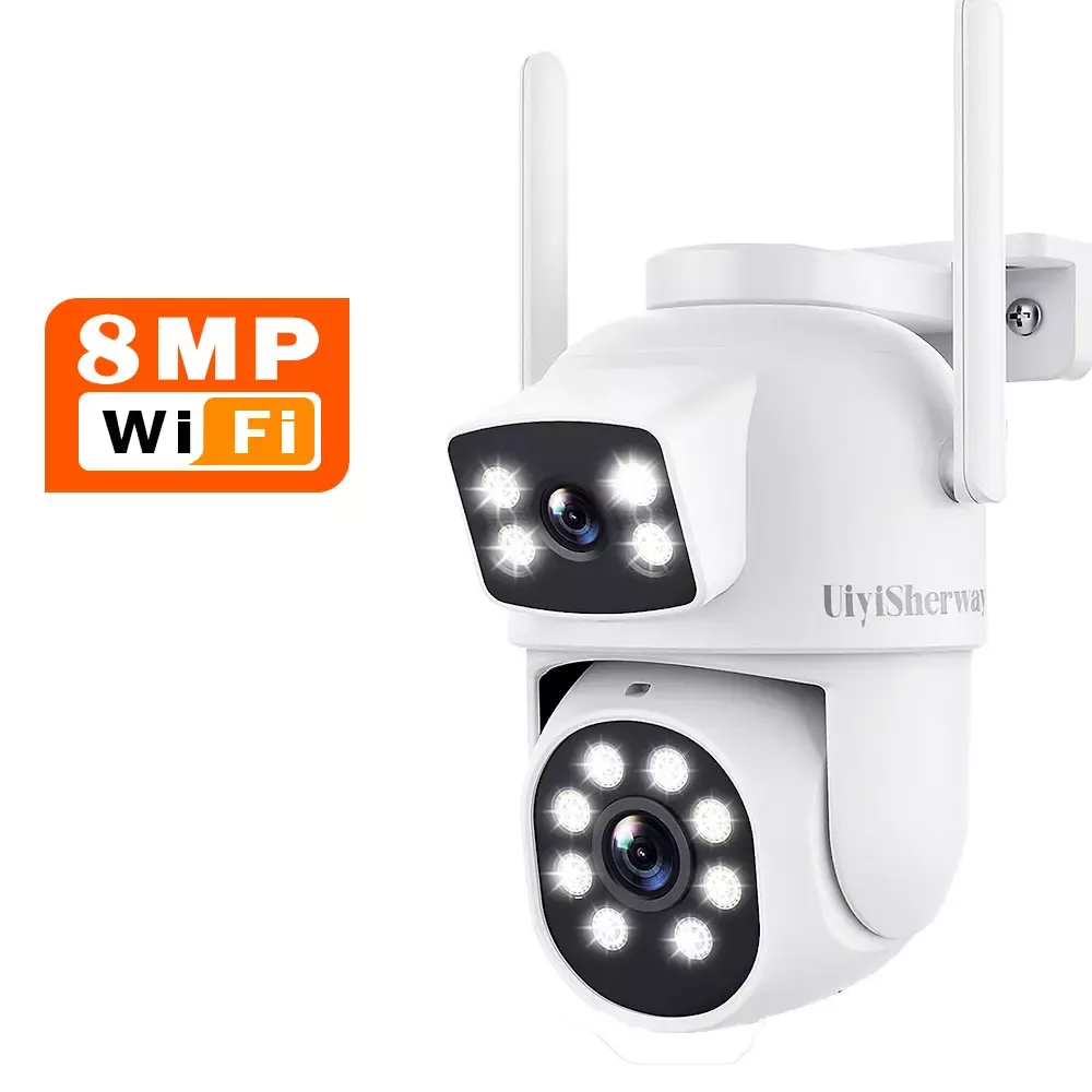 Upgrade your home or business security with the advanced 4K 8MP Dual Lens Outdoor WiFi PTZ Security Camera. Designed for full coverage and crystal-clear detail, this outdoor surveillance camera combines dual-lens technology with smart features like AI human detection, two-way audio, and full-color night vision. Whether you’re watching over your backyard, garage, storefront, or driveway, this camera keeps you connected and in control—day or night.