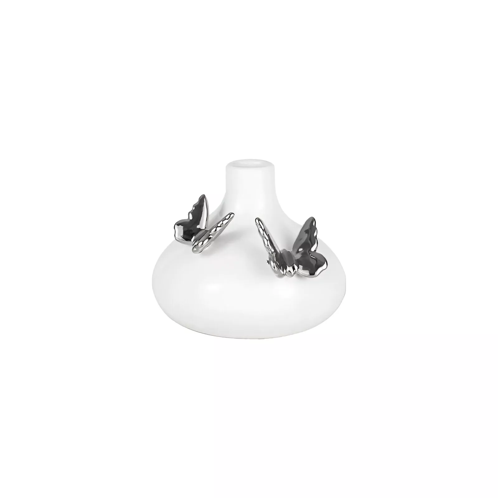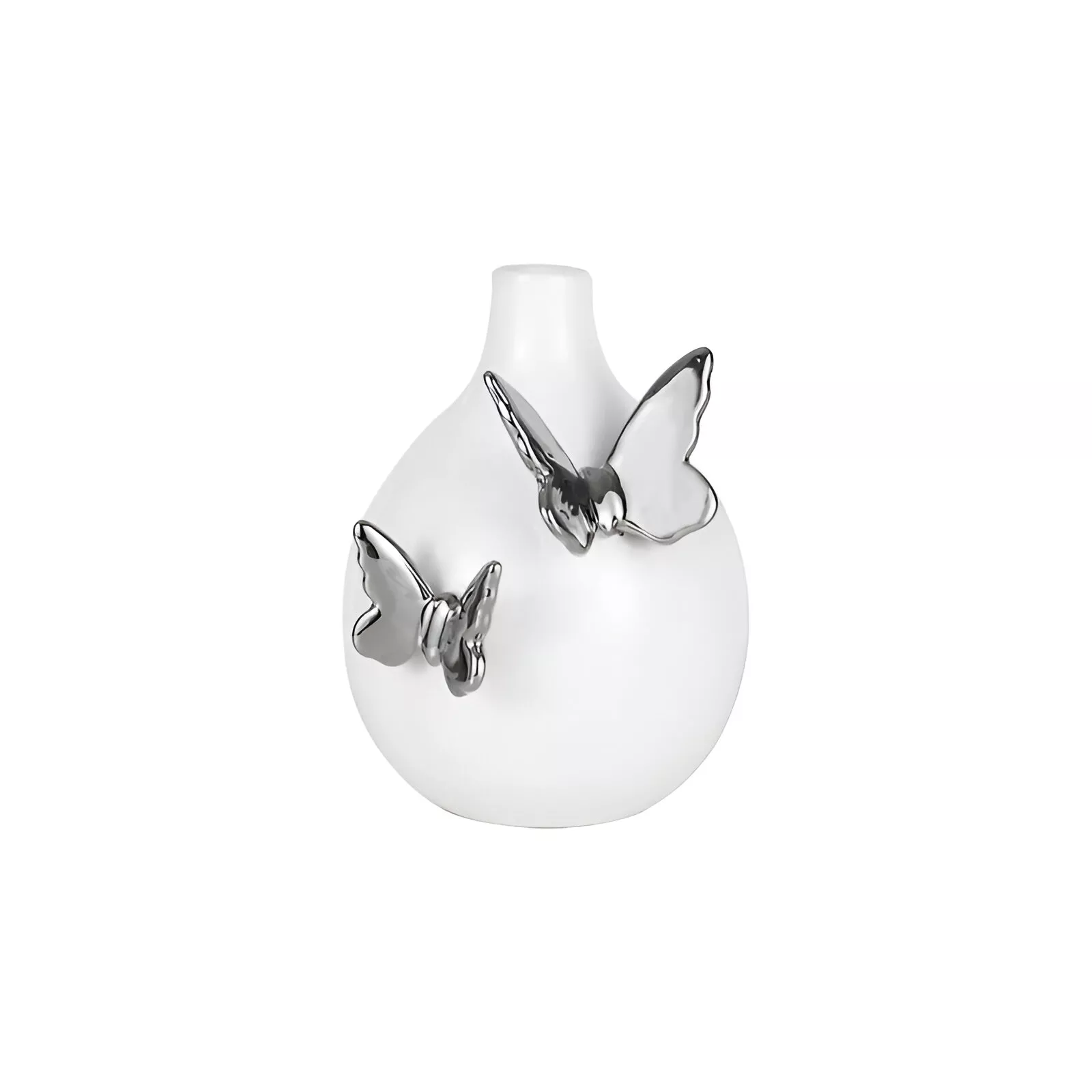 The vase’s elegant silhouette and embossed butterfly detailing make it a beautiful base for fresh blooms, dried flowers, or even as a standalone décor piece. Its smooth white glaze and subtle textured pattern give it a timeless look that fits effortlessly with contemporary and minimalist interiors. Whether you’re staging a springtime centerpiece or adding personality to your shelves, this vase delivers both form and function.