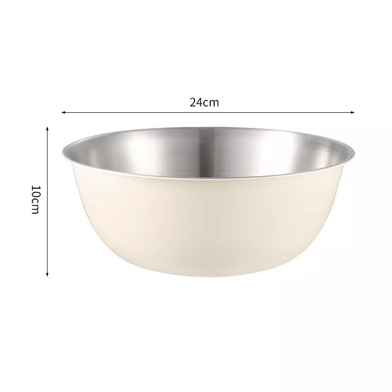 With a built-in scale marked on the interior, portion control becomes second nature. Now you can measure ingredients precisely without extra tools—saving time and reducing food waste. The smooth, solid metal surface is not only easy to clean but also resistant to rust and stains, ensuring your bowl looks new after every use. Available in soft yellow and warm beige, it adds a pop of color and calm to any kitchen decor.