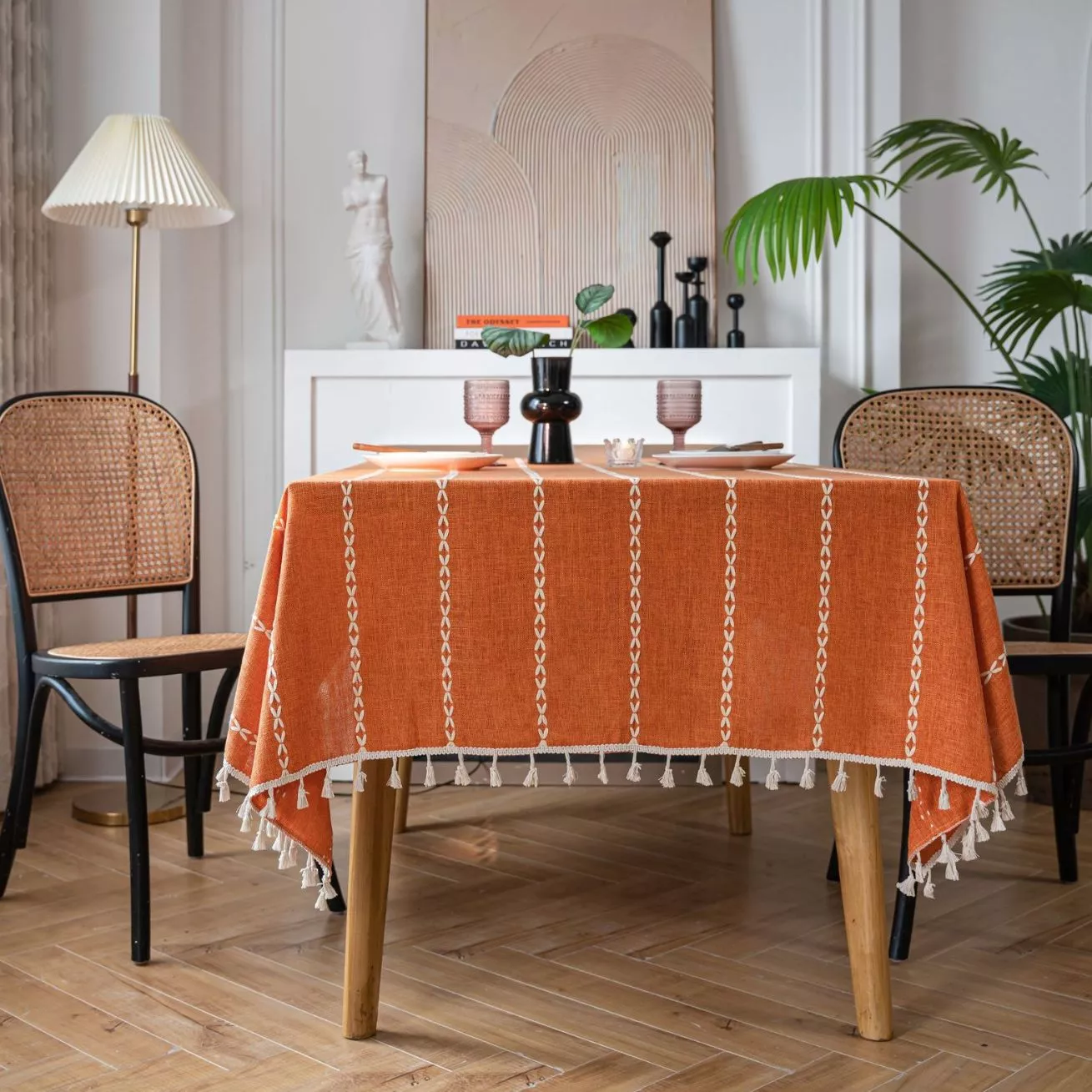 Pumpkin Orange Embroidered Tablecloth – Rectangular Halloween Party Decor