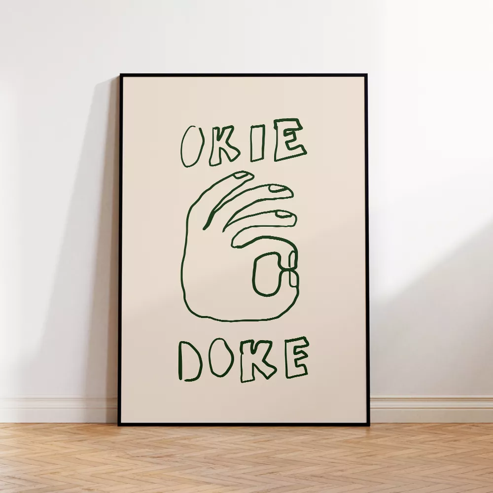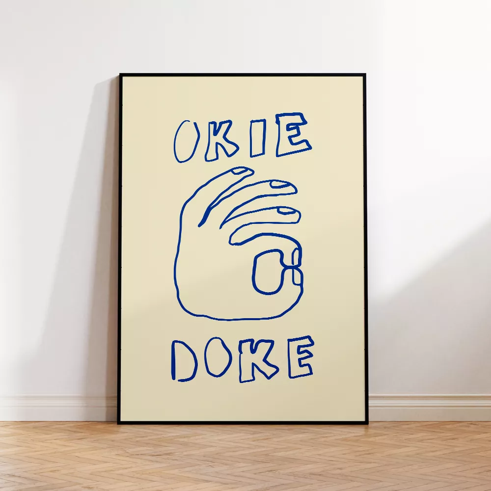What sets this piece apart is its unique blend of retro charm and minimalist style. The “Okie Doke” quote adds a touch of wit and personality, making it ideal for spaces that crave a little more fun and a lot more flair. From cozy bedrooms to stylish living rooms, kitchens, home offices, or even kids’ spaces – this versatile print enhances any wall it graces. It’s a conversation starter, a mood lifter, and a simple way to express your style without saying a word.