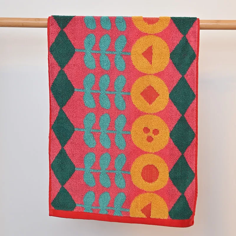 Each towel features a charming, double-sided jacquard pattern — with adorable floral and fruit illustrations inspired by Nordic countryside aesthetics. The texture is gentle, thanks to the use of 21s long-staple cotton yarns, woven in a way that keeps them ultra-soft yet durable. These towels aren’t just pretty — they’re practical. With excellent water absorption in just 5 to 10 seconds, they dry you off quickly while feeling light and airy on your skin.
