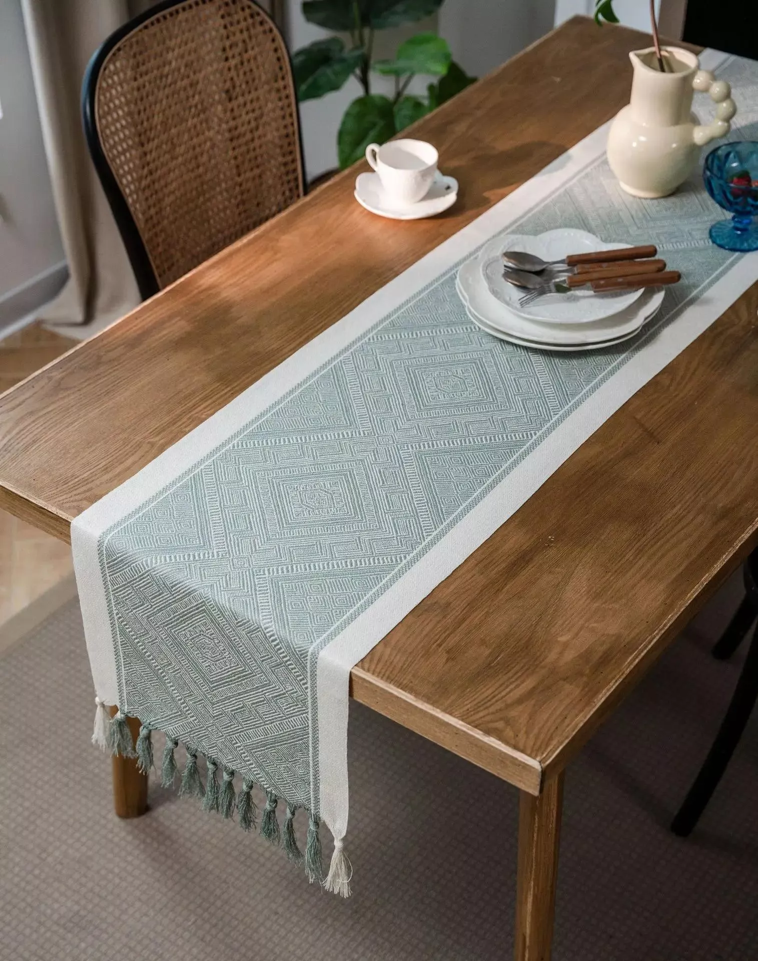 What sets this table runner apart is its smart combination of contemporary design and high-quality craftsmanship. The jacquard weave gives the fabric a rich, textured look without being bulky, while the tassels add a soft decorative flair. It’s a beautiful balance of simplicity and elegance—perfect for elevating your tabletop with minimal effort.
