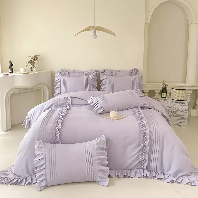 Bring elegance, charm, and romance into your bedroom with this gorgeous Korean Princess Style Lace Ruffles Bedding Set. Designed for those who adore a soft, feminine touch in their space, this 4-piece bedding set transforms any ordinary bed into a fairytale retreat. Delicate lace trim, soft brushed microfiber fabric, and gracefully flowing ruffles give this bedding set its signature princess-inspired look—perfect for creating a cozy yet luxurious atmosphere year-round.