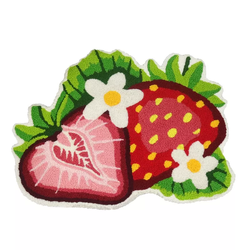 Strawberry Shaped Cartoon Rug – Soft Anti-Slip Floor Mat for Home & Bathroom